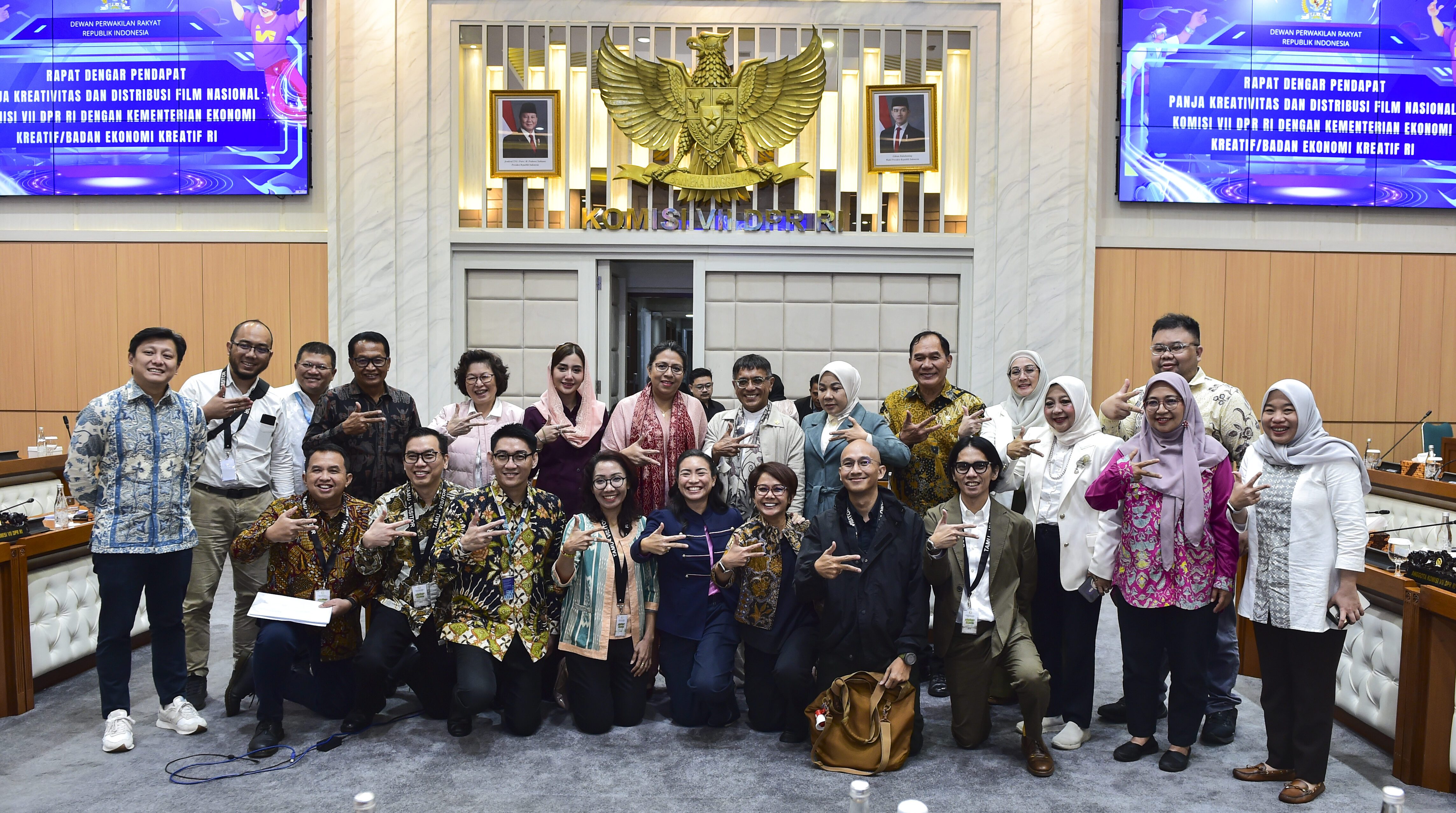 Rapat yang berlangsung terbuka ini membahas tantangan struktural dan hambatan utama dalam ekosistem film nasional, khususnya pada aspek pembiayaan, distribusi, promosi, perlindungan kekayaan intelektual (IP), serta keberlanjutan industri film Indonesia.